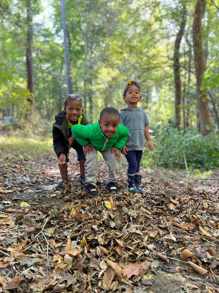 The fall weather is perfect for nature walks, collecting leaves, outdoor kitchens and more. The amount of science that is happening around us is enough to keep us learning for a lifetime. Today we spent a fun 60 minutes hiking in some nearby woods in North Carolina. The flowing water drew us close and we mapped out ways to cross the water. Gathering sticks and moving to new spaces, we were creating solutions to getting to new lands. We felt a variety of textures on plants, sunk our feet in sand and observed the growing moss. It was all the science we desired. We listened to the song of the water passing, pushing, pulling. It was most satisfying. We began the month with purposeful gratitude.